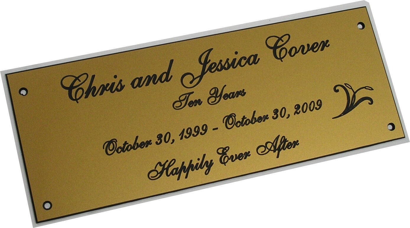 We suggest you contact us via email. Many colors are available and materials as well. Materials are by the square inch and engraving is by the character. Some plastics look like metal, others can be engraved from behind and paint-filled giving them a smooth front that is very tamper proof. There's even a very cool non toxic plastic that glows in the dark. The photo, size and p[ricing are for your reference Talk to us!