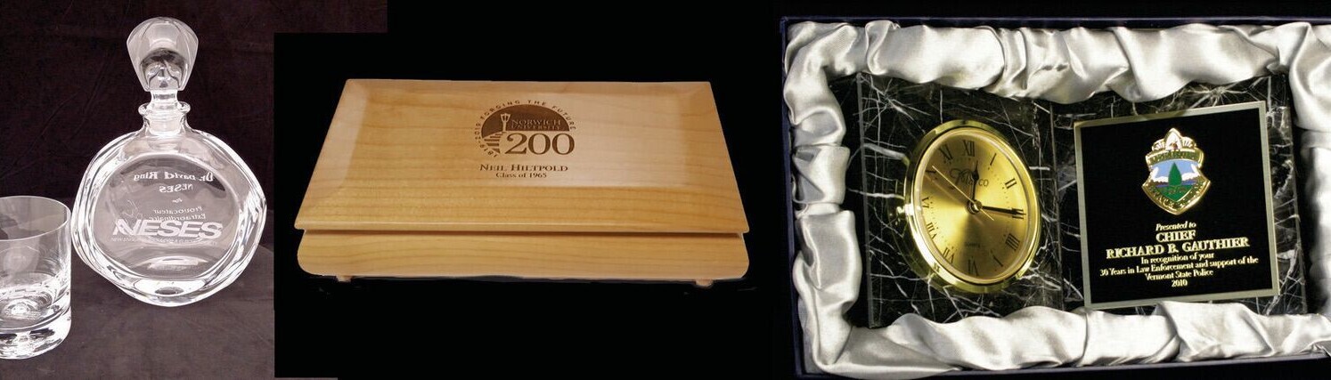 We have a wide variety of items to choose from in our gifts section. The majority of anything that can be sand-carved, engraved, or sublimated (using a full-color process) may be given as a gift. Personalized gifts are ideal for special life events such as graduations, birthdays, weddings, and retirements. Using high-quality materials like clocks and pewter, sterling silver, crystal vases, drinkware, and more- we'll help you convey your recognition in a beautiful way with a custom gift that lasts a lifetime.