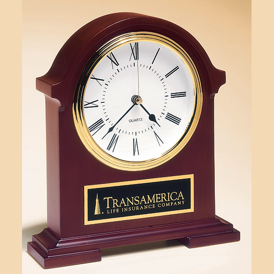 The clock comes with a black brass engraving plate that we engrave using a diamond cutter and complex fill patterns to cut into the metal. This makes for logos that pop and text with depth that sparkles and catches the light. We do not laser engrave metal as it makes a flat, lifeless award