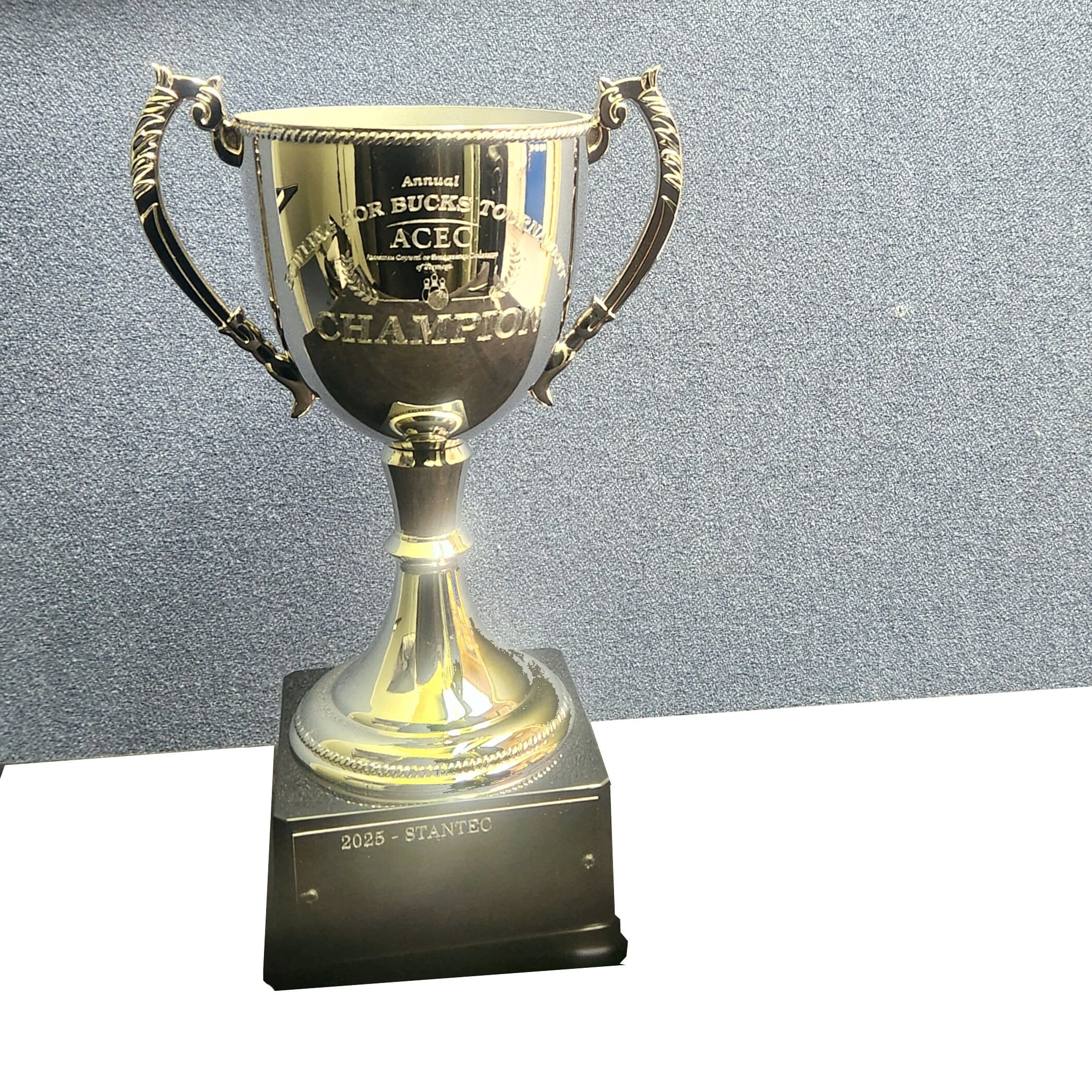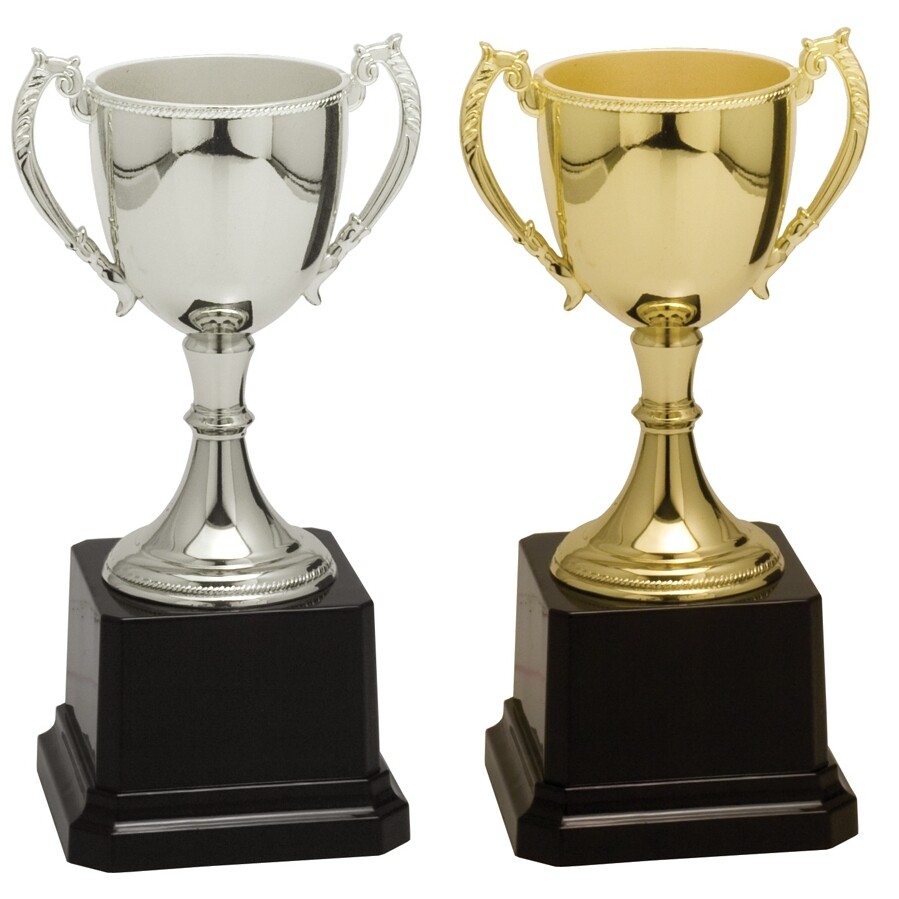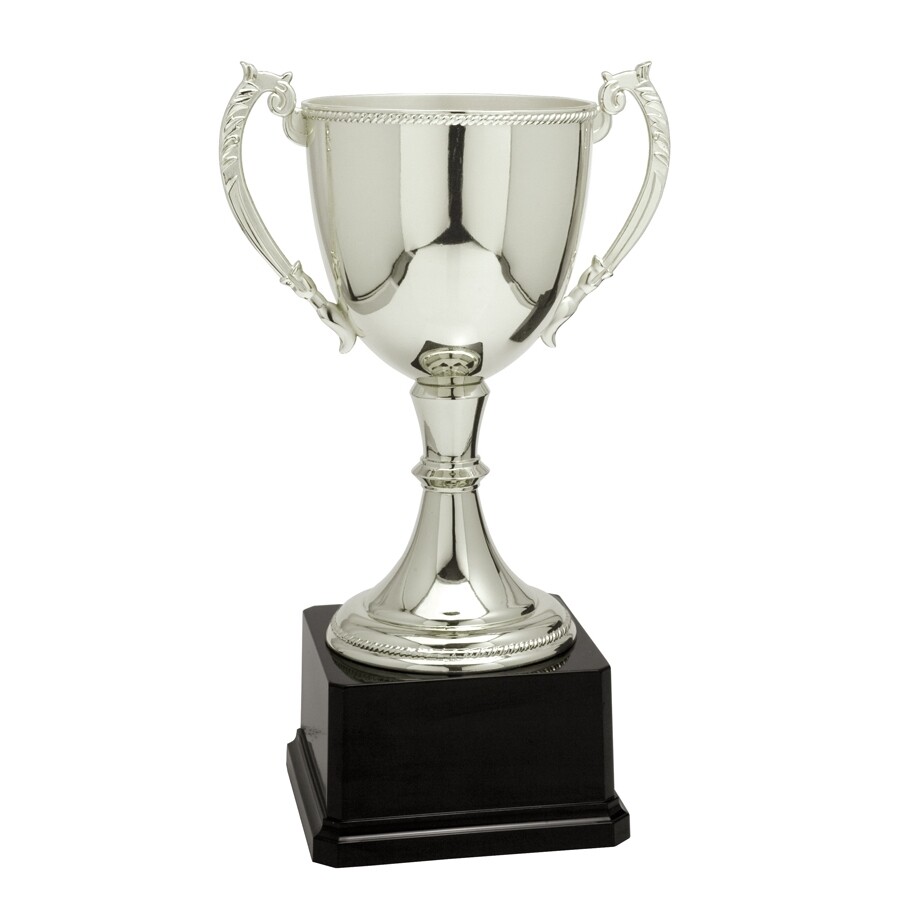 Nice quality zinc plated traditional trophy cups, which can be engraved (most cannot). We engrave these using a diamond cutter and complex fill patterns to cut into the metal. This makes for logos that pop and text with depth that sparkles and catches the light. We do not laser engrave metal, as it makes a flat, lifeless award.